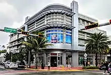 North of 41st Street this boulevard lies between the Atlantic Ocean and the Indian Creek, lined by palm trees, and famous hotels from the 1950s and 1960s such as the Eden Roc and the Morris Lapidus-designed Fontainebleau Hotel, built in the curvy, flamboyant Neo-baroque fashion that defined the 1950s "Miami Beach" resort hotel style.[2]