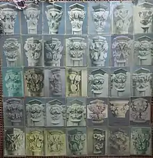 The works to cover the seal took nearly ten years, from 1995–2005,[4] with Fussenich stating that "covering the seal took as much effort as building an entire village church".[10] Sandstone from Oberkirchen was chosen for the repairs, as it was the same type as was used for the initial construction of the tower. Stonemasons at the Cathedral Workshop chiselled 250 tonnes of stone into 823 blocks, with 124 of these being elaborate sculptural finials, pinnacles, and capitals. Stonemasons Willi Bauer and Steinmetz Marcus Schroer created these structures, as well as floral decorative pieces, based on modern designs, rather than from historical plans. The plants depicted include clover, thistle, hops, bougainvillea, and black-eyed susanne, and are the most recent pieces of stonework completed at the cathedral. In addition to these, the figures of Saints Cordula, Christophorus, Katharina von Alexandrien, and Nikolaus were all recreated from 18th century plaster models by Peter Fuchs.