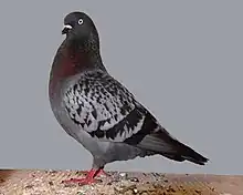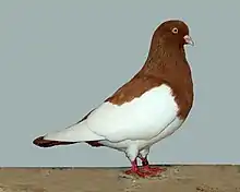 The Cologne Tumbler is a breed of fancy pigeon. Cologne Tumblers, along with other varieties of domesticated pigeons, are all descendants from the rock pigeon (Columba livia). The Cologne Tumbler pigeon originates in the Netherlands[1] and is found in clean legged and muffled varieties.[2]