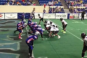 Columbus playing the Louisiana Swashbucklers on April 14, 2012. Note the pink numbers in support of cancer awareness.[11]