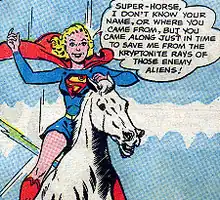 Comet was one of a series of super-powered animals, including Streaky the Supercat and Beppo the Supermonkey, that were popular in DC's comics of the 1960s. Comet was Supergirl's pet horse and, while in his human form as Bill Starr, her brief boyfriend. Comet also had a brief romance with Lois Lane in her comic book.[3]