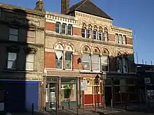 Limehouse Town Hall is at No. 646, constructed in 1879 by A. and C. Harston. It was badly damaged in World War II and rebuilt as council offices. It has subsequently served as the National Museum of Labour History, a homeless shelter, and an arts centre.[8] The Passmore Edwards Sailors Palace at No. 680 was built in 1901 in a Neo Tudor style. It has been Grade II listed since 1983.[15]