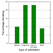 Compliance is a response—specifically, a submission—made in reaction to a request. The request may be explicit (e.g., foot-in-the-door technique) or implicit (e.g., advertising). The target may or may not recognize that they are being urged to act in a particular way.[1]