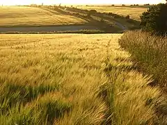 ![]() Fields of barley with narrow roadside hedgerows cover a large portion of Compton. | |