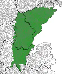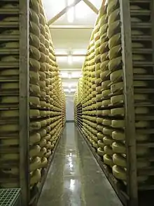 Comté (French pronunciation: [kɔ̃.te]) is a French cheese made from unpasteurized cow's milk in the Franche-Comté region of eastern France bordering Switzerland and sharing much of its cuisine. Comté has the highest production of all French Appellation d'origine contrôlée (AOC) cheeses, at around 66,500 tons annually.[1] It is classified as an Alpine cheese.