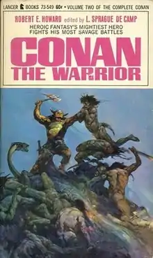 Conan the Warrior is a 1967 collection of three fantasy short stories by American writer Robert E. Howard, featuring his sword and sorcery hero Conan the Barbarian. The collection is introduced and edited by L. Sprague de Camp. The stories originally appeared in the fantasy magazine Weird Tales in the 1930s. The book has been reprinted a number of times since by various publishers, and has also been translated into Japanese, German, French, Polish, Spanish, Swedish and Italian.