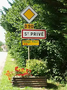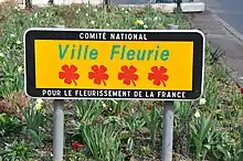 The Concours des villes et villages fleuris (English: 'Competition of cities and villages in bloom') is an annual French contest. It aims to encourage communes to adopt and implement policies improving the quality of life of their inhabitants and enhancing their attractiveness to visitors through the provision and maintenance of green spaces and the enhancement of their natural environments. Successful communes are awarded the right to display a badge (one to four flowers) on road signs and in other local promotional material.