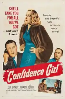 Confidence Girl is a 1952 American crime film written and directed by Andrew L. Stone. The film stars Tom Conway, Hillary Brooke, Eddie Marr, John Gallaudet, Jack Kruschen, Dan Riss and Walter Kingsford. It was released on June 20, 1952 by United Artists.[1][2]