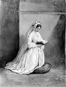 Girl in Confirmation Dress at Prayer (1860) C. Chaplin[1]