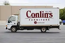 A Conlin's Furniture branded Isuzu NPR truck in Gillette, Wyoming