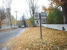 At the junction with Coe Street, Route 183 turns northwest onto Coe while US 44 continues west on Norfolk Road. A two-lane rural area outside of Winchester, Coe Street soon becomes Colebrook Road and meanders to the northwest on a far-distance parallel with US 44. Entering the town of Colebrook, Route 183 reaches a junction with Millbrook Road, where it turns northeast. The route passes a junction with Route 182 (Stillman Hill Road).[3] At this junction, Route 183 becomes designated as a scenic road, reaching downtown Colebrook.[4]