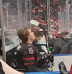 ![]() Bedard at the 2022 World Junior Ice Hockey Championships in the penalty box | ||