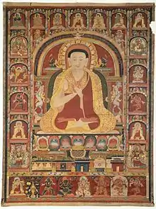 The thangka started off as a traditional Nepalese art form. This form was originally exported to Tibet after Princess Bhrikuti of Nepal married Songtsän Gampo. In the early days, these painted scrolls became very popular with travelling monks because of their portability. During the Ming (1368–1644) and Qing (1644–1912) Dynasties, the painting of thangkas flourished in Tibet.[1]