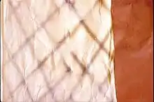 Humidification introduces moisture in the form of water vapour into the thangka to relax the fibers quickly. It is then followed by drying and flattening under precisely controlled conditions such as sandwiching the thangka between sheets of a blotting material and under fairly heavy weight to prevent cockling.[8][9]