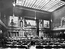 In a proclamation of 22 March, the King promised far-reaching concessions. He instructed the Prussian National Assembly to submit a draft constitution for discussion. The Assembly was elected indirectly under the same electoral law that was used for the Prussian representatives to the Frankfurt Parliament: all men above the age of 24 in full possession of their civic rights and who were not on poor relief could vote for electors who in turn chose the representatives for the assembly.[5] There was, however, little cooperation between the National Assembly and the Royal Prussian Ministry because of the different ideas that the two sides held. On 26 July the National Assembly nevertheless submitted its draft constitution, the so-called "Charte Waldeck",[6] which among other things called for restricting the royal veto. It would have meant Prussia's transition to a constitutional monarchy, and, as "the King declare[d] to the Minister President ... 'he would never accept [it] under any conditions'".[3]
