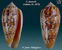 - 1 2 Conus dusaveli (H. Adams, 1872). Retrieved through: World Register of Marine Species on 27 March 2010.