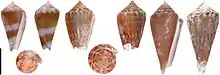 | Several views of a shell of Conus karlschmidti; All are reversed images photographed under UV light | |