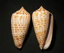 | Two views of a shell of Conus mulderi | |