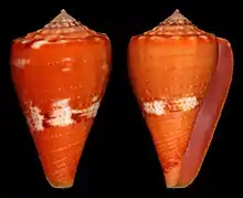 Shell of marine mollusk, 'conesnail', in the family Conidae