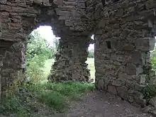 Coolamber Hall-House is an Anglo-Norman ruin in County Longford, Ireland that is dated to the early 13th century.[1] Possibly the residence of Thomas Nugent, 4th Earl of Westmeath, one of the commissioners for Plantation of Longford in 1620.[2][3] Described by Samuel Lewis as ‘the ruins of an old castle, which was besieged by Oliver Cromwell, it formed the boundary of the English Pale’.[4] Hall-houses of this type consist of two-storey buildings with the entrance doorway on the first floor. The entrance was accessed via an external staircase of wood or stone. The main feature of the building was the large first floor hall which was open up to the roof. The ground floor was accessed via a trapdoor or internal staircase and was probably used as a storage area. Many hall-houses like that at Coolamber have been rebuilt or altered considerably.[1]
