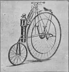 In 1881 Copeland designed an efficient small steam boiler which could drive the large rear wheel of a Columbia penny-farthing to a speed of 12 miles per hour (19 km/h). Unlike typical penny-farthing bicycles, the Copeland had a small wheel at the front, which was turned by the handlebar for steering, and large wheel at the back.[1][2]