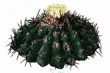 Copiapoa coquimbana is a species of clump-forming cactus native to South America. The plant bears 3 cm (1.2 in) long yellow flowers in summer, and grows up to 60 cm (2 ft) high and 1 m (3 ft) across. The species is named after the city of Coquimbo in Chile. Variations include C. coquimbana var. wagenknechtii, C. coquimbana var. vallenarensis, and C. coquimbana subsp. andina.