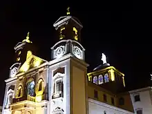 The Basilica forms a Latin cross with three naves. Despite being a late construction, it retains the mannerist scheme typical of Jesuit art. However, the façade differs substantially and has a neoclassical style with Baroque-inspired cornices, and the towers recall Romanesque solutions.[7]