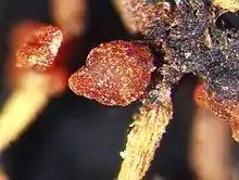 Corallomycetella is a genus of ascomycete fungi in the family Nectriaceae.[1][2][3] Species of Corallomycetella are tropical, and are characterized by the formation of brightly colored rhizomorphs of their rhizostilbella-like asexual morphs.[2][4] These fungi causes a number of plant diseases including 'violet root rot' of Theobroma cacao, root rot of Carica papaya, and 'stinking root disease' of several tropical woody plants.[5] Two species of Corallomycetella are recognized: Corallomycetella elegans (Berk. and M.A. Curtis) C. Herrera & P. Chaverri and Corallomycetella repens (Berk. & Broome) Rossman & Samuels.[2] Corallomycetella jatrophae is now classified under Corallonectria.[2]
