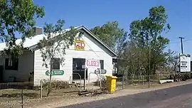 When the railway linking Hughenden and Winton was built in 1899, the town was moved 1 kilometre (0.62 mi) west to the line and renamed Corfield after William Henry Corfielda local carrier and businessman, who, as Member of the Queensland Legislative Assembly for Gregory 1888-99 lobbied for the rail link.[8][2] The population of the town peaked at around thirty to forty residents and facilities included "five railway houses, plus the station master’s house, a post office, two petrol depots, a hotel and a school and teacher’s house ... a goods shed and railway building."[8]