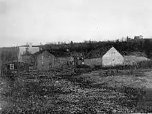 In 1891, Gallagher relocated, this time to Edmonton, also located in the then-Northwest Territories. He had been intrigued with the fact that majority of the territory's wheat and vegetable crops came from the Edmonton area, and scenting a business opportunity, decided to settle there.[1] Purchasing a lot for his business less than 24 hours after arriving in Edmonton, Gallagher established with Calgary based businessman, William Roper Hull, the Gallagher-Hull Meat Company, a wholesale and retail butcher. Incorporated on January 6, 1900,[5] the establishment was a two-storey brick building located on the banks of the North Saskatchewan River, from which the establishment relied on for its freshwater supply. It contained rooms for slaughtering the animals, storage, butchering and preparation of the meat. Offering a variety of different proteins, such as veal, beef, lamb, turkey, chicken, goose, and pork, the business rose to become the largest of its kind in the developing city of Edmonton, producing over 200,000 pounds (91,000 kg) of meat per year by the turn of the century.[6] He would operate the establishment until his retirement in 1911. He also had interests in the brick industry, founding and serving as president of a local brick company.[7][8]