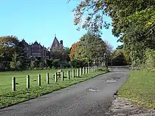 Cornist Hall is a large house 1 mile (1.6 km) west-southwest of the town of Flint, Flintshire, Wales. It was the birthplace in 1746 of Thomas Totty, an admiral who served under Lord Nelson.[1] In about 1884 the industrialist Richard Muspratt commissioned the Chester architect John Douglas to re-model the house, but Muspratt died before this could be executed.[2] It was later owned by members of the Summers family, who ran the ironworks business of John Summers and Sons in Shotton and who made extensive alterations to the house.[1][3] In 1953 the ownership of the house passed to the Local Authority who modified the interior for catering purposes.[4] The Napier family took it over in 1987 and developed it as a wedding and dining venue.[1] The Hall was eventually converted into the local golf club's club-house. Despite the change of hands, Cornist Hall continued to cater for weddings up until its closure in 2012. Since its closure, Flint's local community have petitioned to save the building, in the hope that it will gain listed status and fall under the ownership of the local populace. In the past few years, since the closure of Cornist Hall, a number of local people have complained about the increase in anti-social behaviour and vandalism, suggesting that the former mansion is a magnet for such activities.[5][6] The house is built in brick and stone in Jacobethan style.[4]