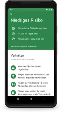 Anyone who tests positive for COVID-19 can share this information voluntarily with the app.[10] Other app users are then notified about when, how long and at what distance they had contact with the infected person within a 14-day period. Testing is available for persons on a voluntary basis.