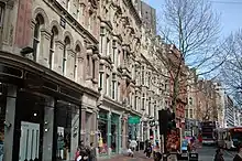 ![]() Southward view along Corporation Street – the two terracotta buildings are Victoria Law Courts to the left and the Methodist Central Hall to the right | |