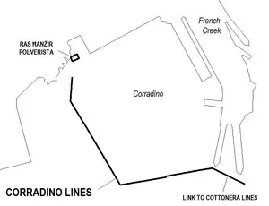 - ↑ "Corradino Lines". schoolnet.gov.mt (in Maltese). Archived from the original on 8 December 2015.