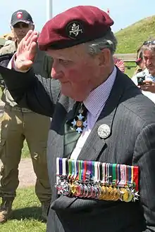 After retiring he was also involved in the Royal Humane Society and was Commander of the Wiltshire Branch of St John Ambulance.[29] He was President of the Royal Ulster Rifles Association and was a regular at the Regimental Remembrance Pilgrimage to Normandy where, until June 2013, he led the annual tribute to honour the actions and exploits of the 1st and 2nd Battalions of The Royal Ulster Rifles during the Normandy Landings.[20]