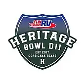 The Heritage Bowl is an annual American NCAA Division II college football bowl game held at Community National Bank & Trust Stadium in Corsicana, Texas. The game was established in 2017 by Antwone "Tony" Taulton. Since 2018 the bowl has operated under the non-profit Corsicana Area Foundation, and proceeds from the game go to local Corsicana and Navarro County charities.[1] Initially called the Corsicana Bowl, the game was given its current name in 2019.[2] Fun Town RV has served as title sponsor since 2021.