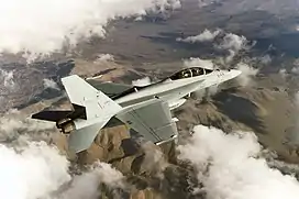 ![]() A U.S. Navy F/A-18F Super Hornet from NAWS China Lake seen over the Coso Range | |