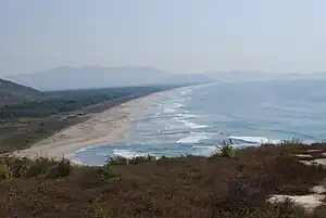 The Costa Grande is one of seven sociopolitical regions of the state of Guerrero and part of one of three environmental regions. Environmentally, the state is divided into La Montaña (The Mountain) region in the north, the Tierra Caliente (Hot Land) in the west and La Costa (The Coast). La Costa includes the approximately 500 km (311 mi) of coastline that the state has which roughly extends from northwest to southeast. This coastline is then divided into La Costa Grande and La Costa Chica (Small Coast), roughly divided by the Acapulco Bay.[1] Acapulco is often considered to be part of the Costa Grande; however, the government of Guerrero officially considers the area around the city of Acapulco to be a separate region.[2][3] The Costa Grande covers most of the Guerrero coast, extending 325 km (202 mi) from the Balsas River on the Michoacán border, southeast to Acapulco.[4] Starting from Michoacán, the Costa Grande extends from the Balsas delta south to Ixtapa and Zihuatanejo. It then moves east to the Morro de Papanoa. From here southeast to Acapulco Bay, there is almost uninterrupted beach.[1][5] Compared to other areas of the state, most of the Costa Grande is fertile, relatively flat land.[1] The Costa Grande is politically divided into seven municipalities Atoyac de Álvarez, Coyuca de Benítez, José Azueta, La Unión, Petatlán, Benito Juárez/San Jerónimo, Coahuayutla de José María Izazaga and Tecpan de Galeana with an overall territory of 2,500 km2 (965 sq mi).[6]
