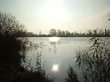 Shorncote Reedbed is at the north-east corner, towards South Cerney (Lakes 84 and 85).[11] It is designed to attract wetland birds, and has several linear islands which maximise the area of available reed fringe. Bittern, reed bunting, water rail, common snipe and reed warbler are recorded as visiting this refuge. There have also been sightings of otter and water vole. There are two bird hides. The footpath to the reserve from South Cerney is subject to frequent flooding from the adjacent Cerney Wick Brook and rising ground waters.[13]