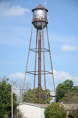 The Cotter water tower is a historic elevated steel water tower located in Cotter, Arkansas. It was constructed in 1935 by the Pittsburgh-Des Moines Steel Company, as part of the development of the local water supply system by the Public Works Administration. The tower was added to the National Register of Historic Places in 2007, as part of a multiple-property listing that included numerous other PWA-era projects in Arkansas, under the heading “An Ambition to Be Preferred: New Deal Recovery Efforts and Architecture in Arkansas, 1933-1943.”[2]