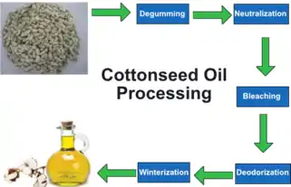 - ↑ "Cottonseed Oil Extraction". GOYUM GROUP - INDIA. 18 April 2019.