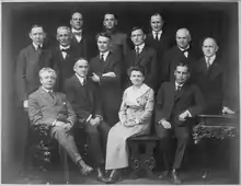In April of 1917, suffragist, Anna Howard Shaw, founded the Women's Committee of the Council of National Defense.[11] The committee was initially made up of Shaw, Carrie Chapman Catt, Maude A. K. Wetmore, Ida Tarbell, Mrs. Joseph E. Cowles, Antoinette Funk, Mrs. Phillip N. Moore, and Mrs. Joseph R. Lamar.[12] The Women's Committee helped match women with groups that had need for volunteers and also advised the defense council of how women could aid the war effort.[11][12]