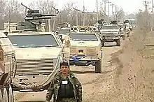 Concerted operations began with numerous raids and "provocative patrols" into the Taliban heartland, already dubbed "Talibania" by German troops.[21] Four insurgents and two ANA soldiers were killed in various engagements and more than 40 insurgents were captured,[22] with large amounts of weapons and explosives seized. German troops tried to maintain a presence even in remote areas during these weeks and were frequently attacked in the face of an overall deteriorating situation in all RC-N: On April 17, 2010, a Norwegian officer was killed when his patrol struck a roadside bomb.[23] On April 29, German troops made a concentrated advance into Chardara district and suffered 15 casualties when they were attacked by suicide bombers and came under heavy fire by an overwhelming insurgent force. A trooper of 2nd company, 292nd Light Infantry Battalion was killed in action, marking the first time since World War II that a German soldier would fall in combat. German troops were attacked regularly during the following weeks.[24][25]