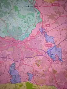 • The part of the parish of Wokingham in Wiltshire, including the east end of the town with its parish church. This exclave joined to the large Hurst exclave via an isthmus the width of a road.[42]
