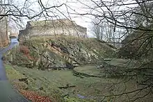 Frederik's sons Diederick I of Isenberg, (1215–1301) and Frederik junior who died as a teenager, were brought up at the ducal court by their uncle Hendrik. At a young age they fought with the support of knights of their uncle to reclaim lost property. Diederick built a wooden fort and nearby a stone castle as a support point on the Schleipenberg (near Hagen Germany), the castle Hohenlimburg named after his mother's family. In 1241–1242 he built a second castle New Isenberg opposite the town of Werden on the river Ruhr. On May 1, 1243, he was formally recognized as count of part of his father's recaptured territory. Until then he call himself 'Van Isenberg' later on Diederick I of Limburg (1215–1301). Diederick's son, Johan died at the age of thirty and left two sons and one daughter. [17] His younger brother Everhard continued 30 years more, the struggle together with his father for the conquest of former Isenberger family property.