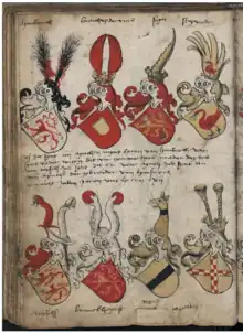 - ▷ — Brother Johan of Limburg-Hohenlimburg (1373–1459), Lord of Limburg-Hardenberg. With son Everhart, Lord of Limburg in the territory of Hardenberg. Family branch died out in 1429.