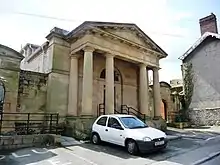 The first public building in the town was the old court house in St Peter's Square which, in its current incarnation, dated back to 1421.[1] It was succeeded by the old county hall in Record Street, which was designed by Joseph Turner as a record office for the Court of Great Sessions in Wales and completed in 1790. It was enhanced by the addition of a tetrastyle portico with Doric order columns supporting a modillioned pediment in 1866.[2] The building also served in a judicial capacity as the venue for the courts of assize, with the justices meeting there on a regular basis.[3] Following the implementation of the Local Government Act 1888, which established county councils in every county, Denbighshire County Council set up its headquarters in the building. However, by the early 20th century, the county leaders considered the building to be too small and decided to commission a more substantial structure.[lower-alpha 1]