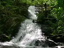 The set of waterfalls is often credited with being 1,200 feet (370 m) high, but topographic maps show the total drop to be closer to 1,000 feet (300 m).[1] Crabtree Falls is a series of cascading waterfalls, with five major cascades, the tallest of which drops about 400 feet (120 m), and several smaller cascades, all over a total distance of approximately 2,500 feet (760 m) horizontally.[1] The cascade with a 400-foot (120 m) drop also gives Crabtree Falls the title of tallest vertical drop in a waterfall east of the Mississippi River. However, the title of tallest free-fall vertical drop goes to Fall Creek Falls in Tennessee's Fall Creek Falls State Park.