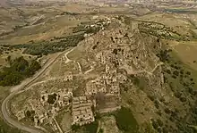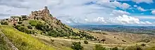 Craco is a ghost town and comune in the province of Matera, in the southern Italian region of Basilicata. It was abandoned towards the end of the 20th century, due to faulty pipe work that was thought to have failed, causing the town to be abandoned due to a land slide. The abandonment has made Craco a tourist attraction and a popular filming location. In 2010, Craco was included in the watch list of the World Monuments Fund.[3]