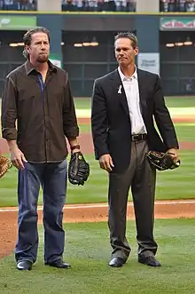 Craig Alan Biggio (/ˈbɪi/; born December 14, 1965) is an American former baseball second baseman, outfielder and catcher who played 20 seasons in Major League Baseball for the Houston Astros, from 1988 to 2007. A seven-time National League (NL) All-Star often regarded as the greatest all-around player in Astros history, he is the only player ever to be named an All-Star and to be awarded Silver Slugger Award at both catcher and second base. With longtime teammates Jeff Bagwell and Lance Berkman, he formed the core of the "Killer B's" who led Houston to six playoff appearances from 1997 to 2005, culminating in the franchise's first World Series appearance in 2005. At the end of his career, he ranked sixth in NL history in games played (2,850), fifth in at bats (10,876), 21st in hits (3,060), and seventh in runs scored (1,844). His 668 career doubles ranked sixth in major league history, and are the second-most ever by a right-handed hitter; his 56 doubles in 1999 were the most in the major leagues in 63 years.